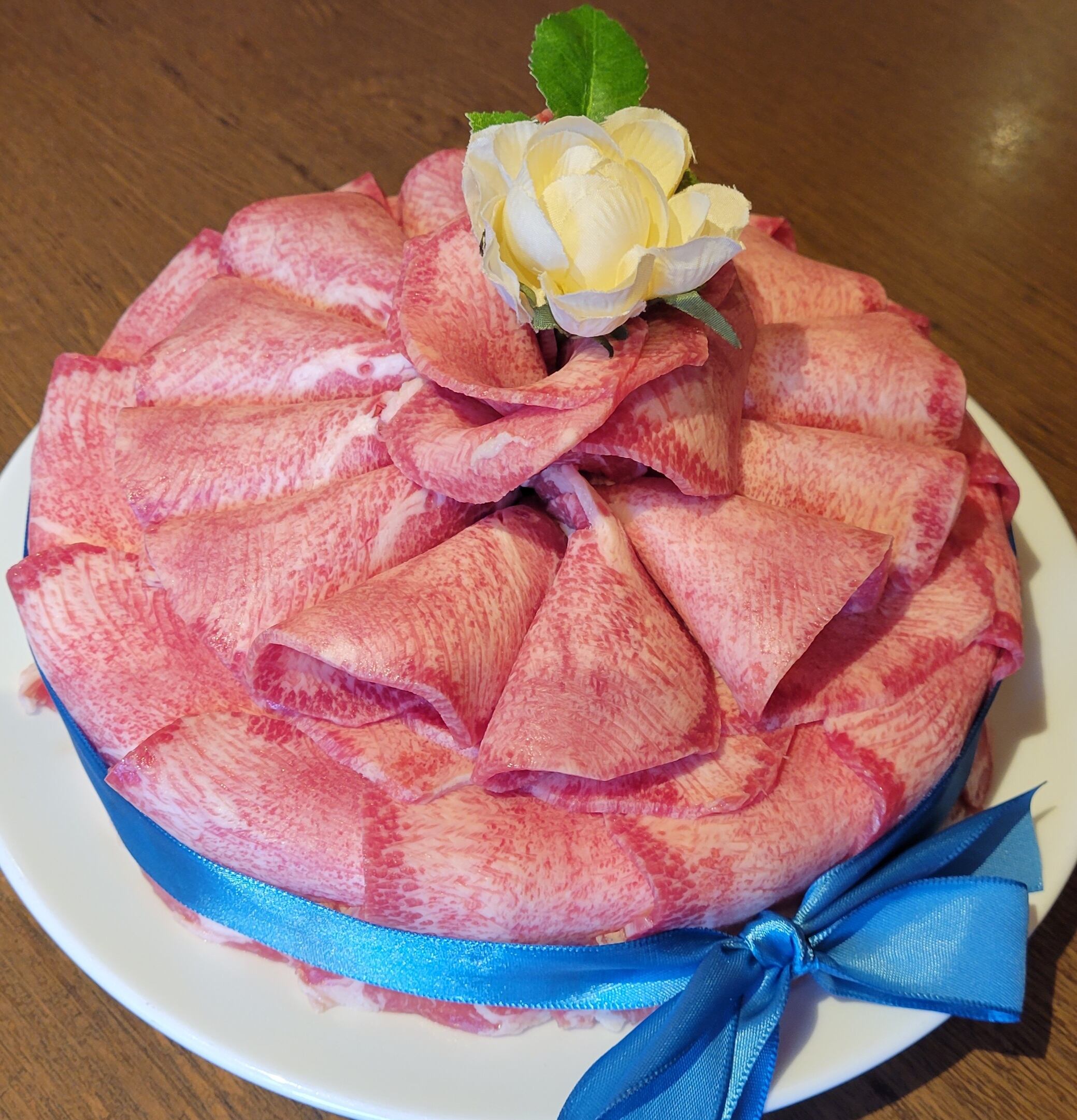 黒毛和牛タンケーキは、黒毛和牛のたんを使用し、熟練のプロが心を込めて仕上げています。特別な日の食卓を華やかに演出する、贅沢な一品です!